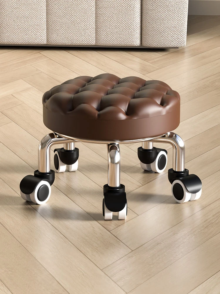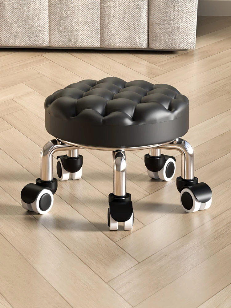 360度回転キャスター付きの柔らかい座面の小さなスツール!子供用椅子としても最適、背もたれ付きで快適。家庭用の美しい仕上げや足の手入れにぴったりな丸いスツールです。
