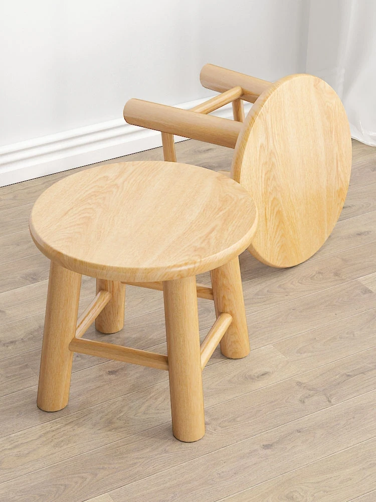 天然木製オークのダイニングスツール - 家庭用低椅子、子供用小丸椅子、ティーブル用、靴を履くための便利なスツール。温もりあるデザインで、どんなインテリアにもぴったり!