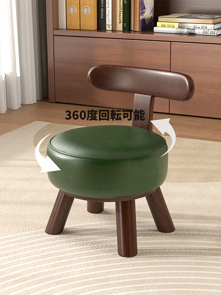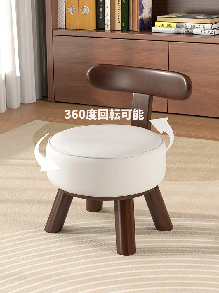 回転可能な実木製スツール - 家庭用の快適な小椅子、子供用にも最適!リビングやソファにぴったりな低めのデザインで、スタイリッシュにお部屋を演出。