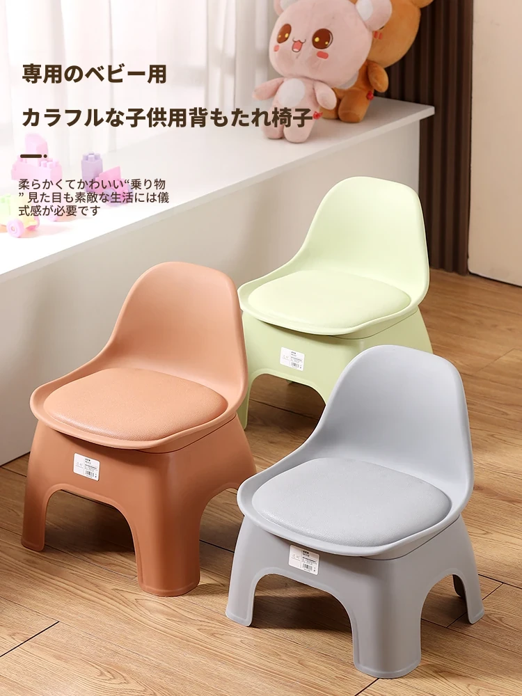 シンプルでスタイリッシュな家庭用背もたれ付き小椅子 - リビングやティーテーブルに最適!軽量プラスチック製で、子供から大人まで使える便利なソファ下の低いスツール。快適な座り心地を体験してください!
