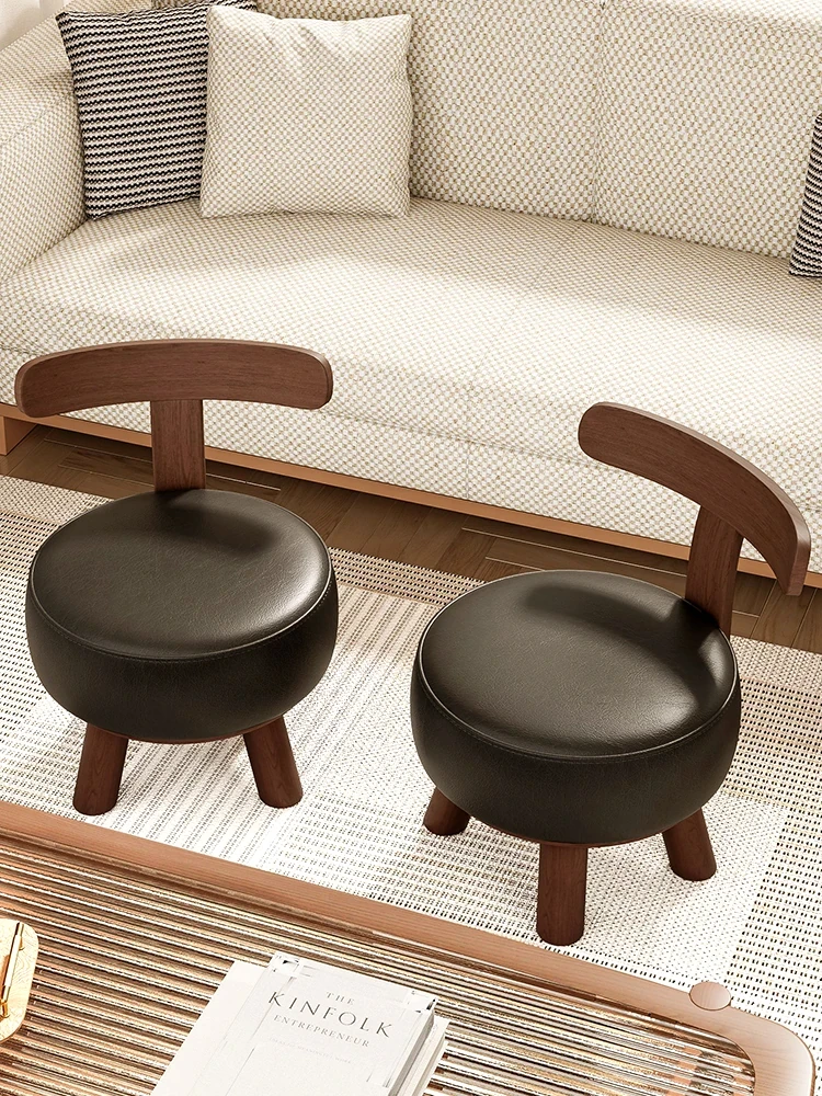 回転式実木スツール - 家庭用背もたれ付きミニチェア、リビングルームやソファにぴったり!子供にも安心な頑丈な丸椅子で、楽しいひとときを演出します。