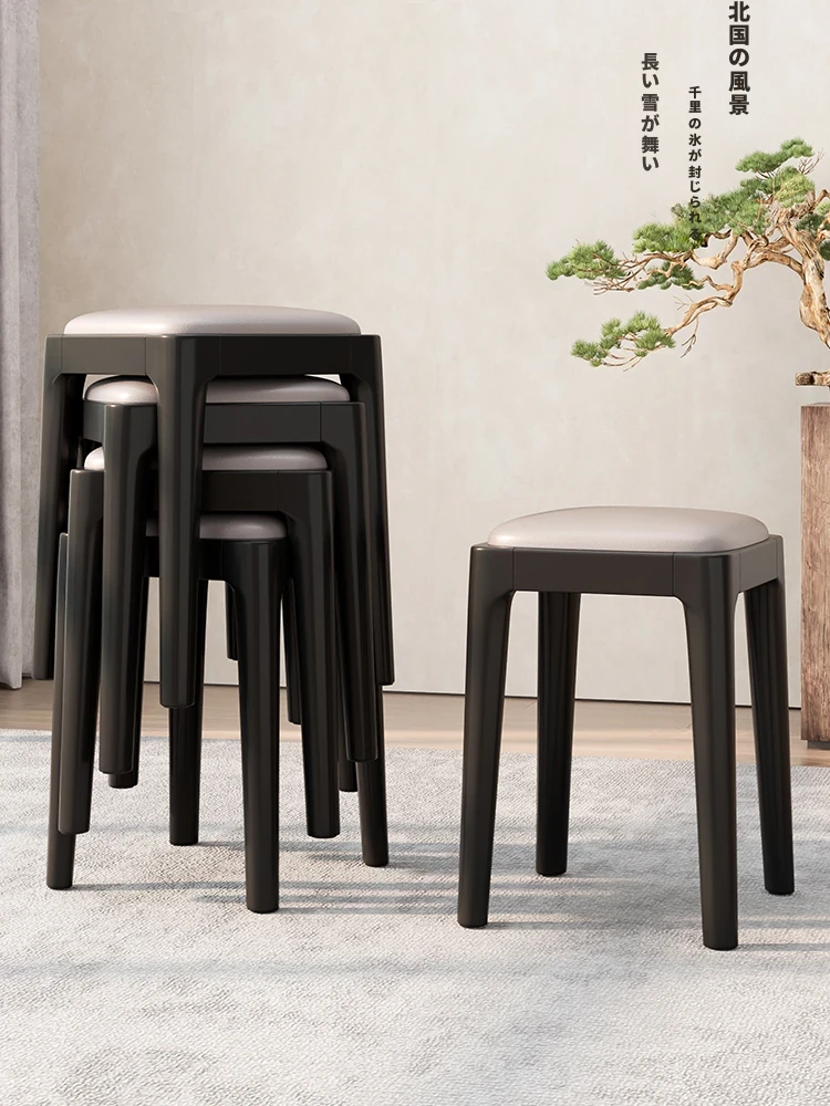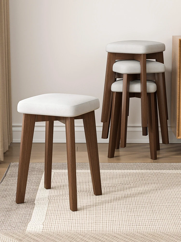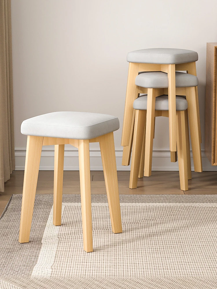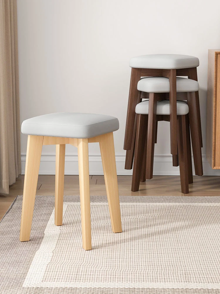 実木製のスタッキング小型スクエアスツール - 簡単に重ねられる円形スツール、ドレッシングやリビング、ダイニングテーブルに最適な収納椅子!シンプルで便利なデザイン、あなたの生活空間をおしゃれに演出します。
