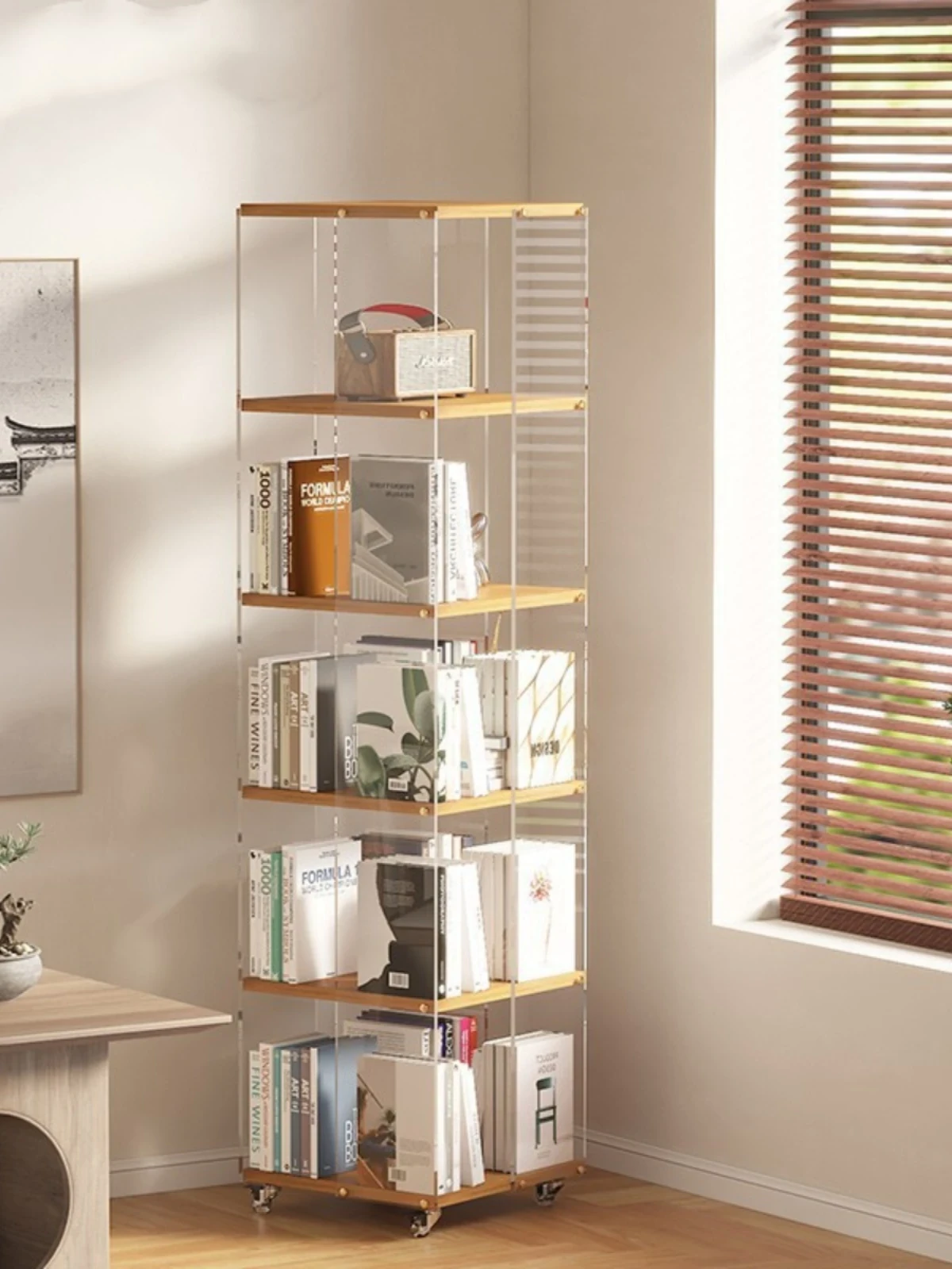 Multifunctional Acrylic Rotating Bookshelf - Stylish and Modern Floor Storage Rack for Organizing and Displaying Your Essentials