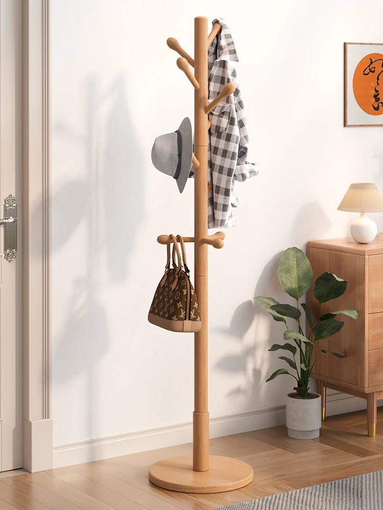 Solid Wood Freestanding Coat Rack - Simple Beech Wood Clothes Hanger for Bedroom, Ideal for Home Use, Stylish Indoor Garment and Bag Organizer