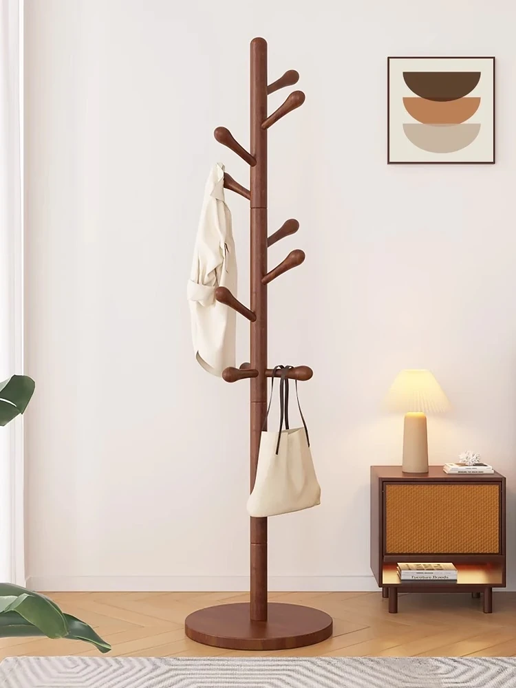 Solid Wood Freestanding Coat Rack - Stylish Bedroom Clothes Hanger for Home Use, Simple Indoor Storage Organizer and Bag Holder