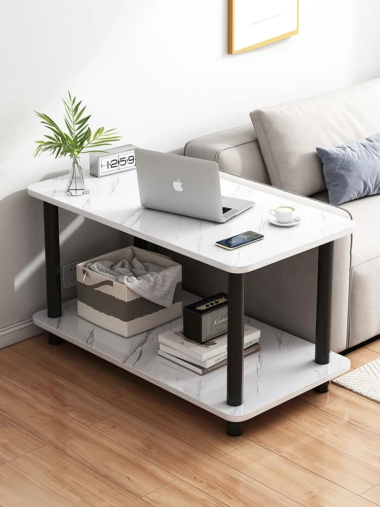 Elegant Small Side Table for Living Room and Balcony - Double-Layered Italian-Style Nightstand and Storage Rack for Compact Spaces