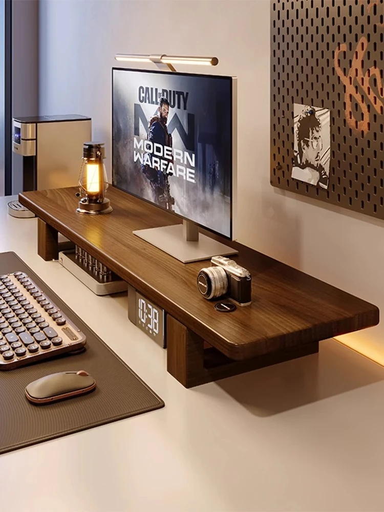 Solid Wood Monitor Stand Riser - Walnut Desk Keyboard Storage Organizer, Elevate Your Workspace with Stylish Desktop Storage Solutions