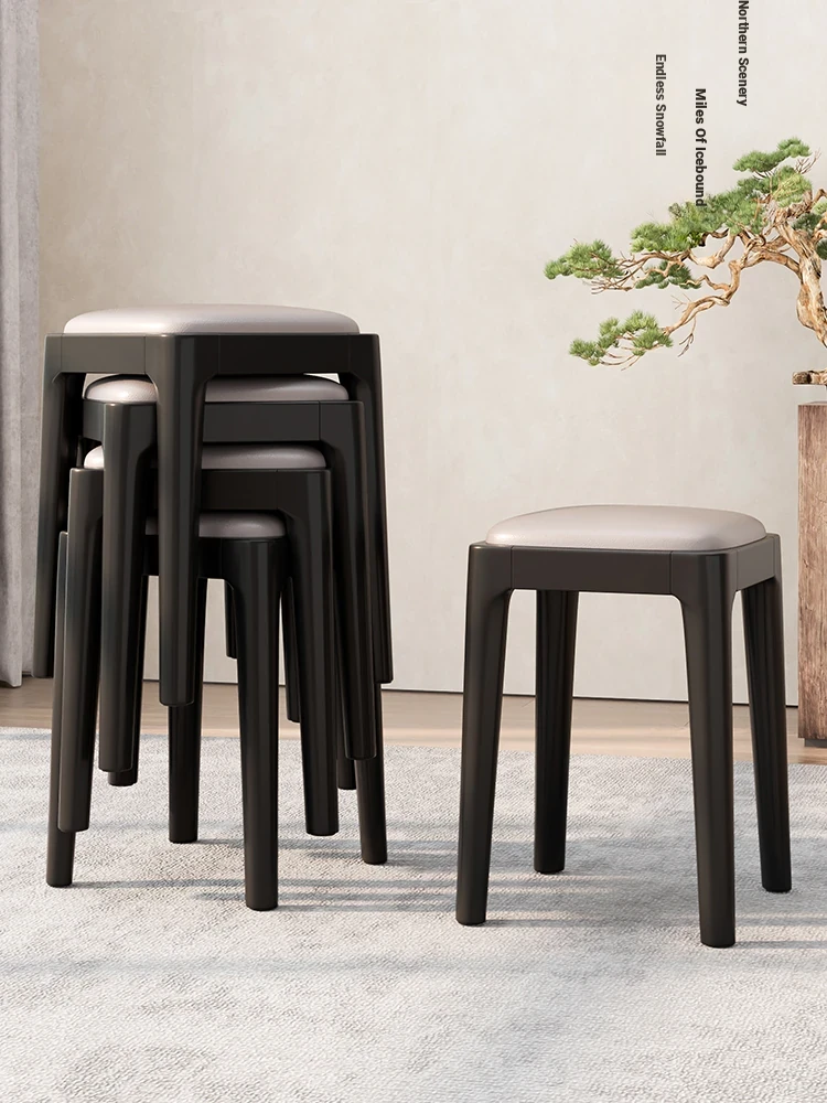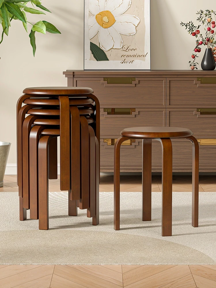 Solid Wood Stacking Stool - New Chinese Style Round Ottoman for Home Use, Space-Saving Design, Perfect for Dining Tables and Tea Tables, Modern and Versatile, Easy to Store.