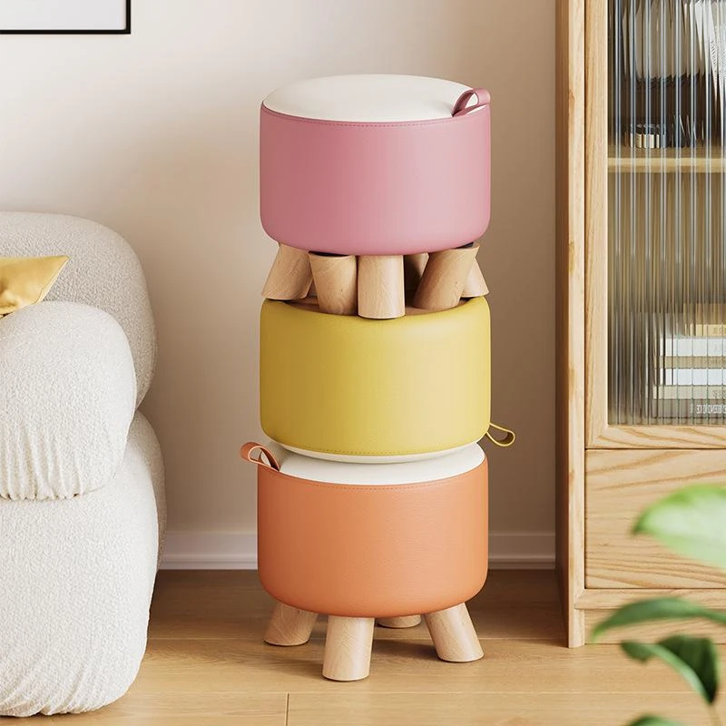 Stackable Wooden Stools - Minimalist Design Shoe Bench and Dining Chairs for Home Use - Trendy Round and Square Options for Versatile Seating