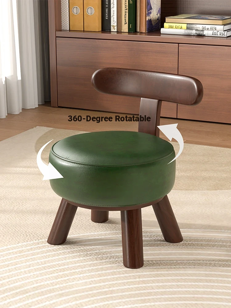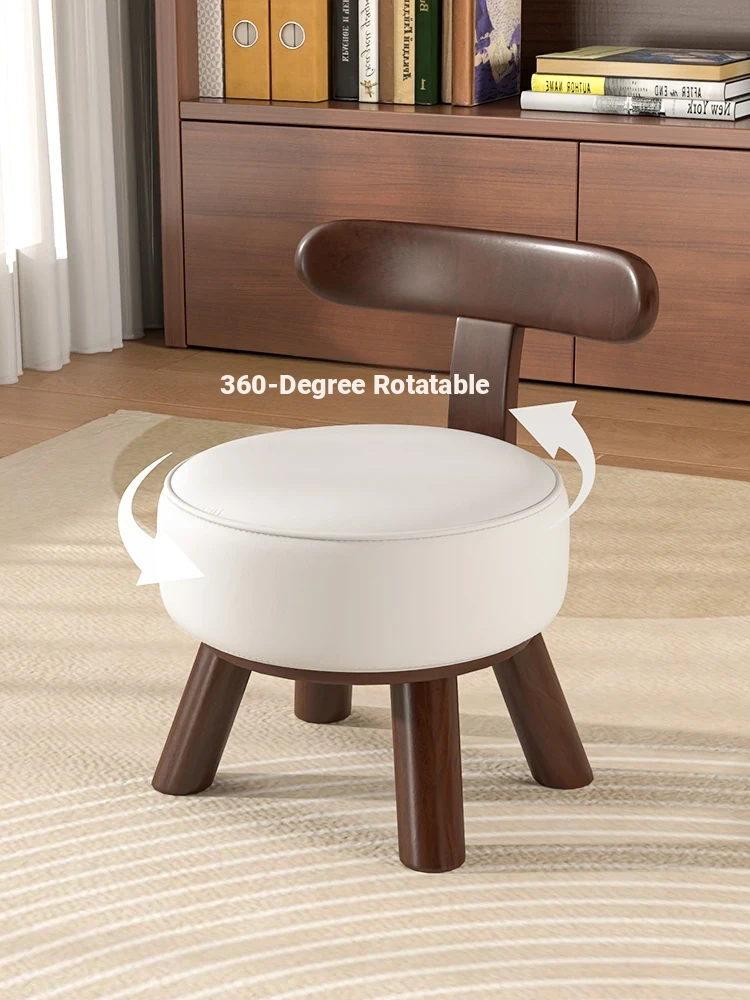 Rotating Solid Wood Stool with Backrest - Versatile Low Chair for Home, Kids, and Living Room - Perfect for Sofa and Relaxation
