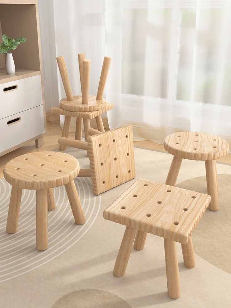Creative Solid Wood Chair for Home - Versatile Living Room Backrest Stool, Ideal for Kids and Nurseries, Perfect Dining Chair or Shoe Bench, Compact Design for Small Spaces