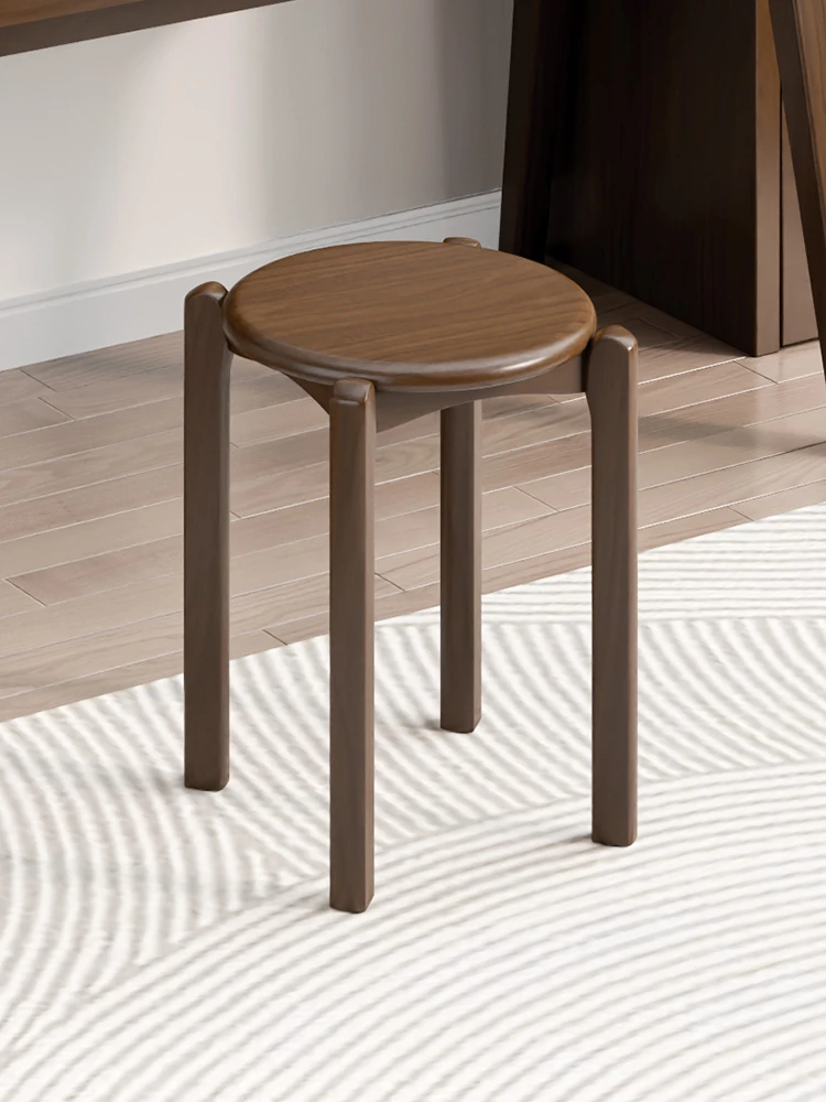 Solid Wood Round Stool - Versatile Home Seating for Living Room, Shoe Changing, and Stacking. Perfect for Small Spaces and Family Use!