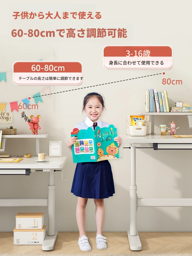 子供用昇降学習机 - 小学生向けの快適な家用デスクセット!書き物やパソコン作業に最適なシンプルなデザインで、子ども部屋をスタイリッシュに演出。成長に合わせて高さ調整可能!
