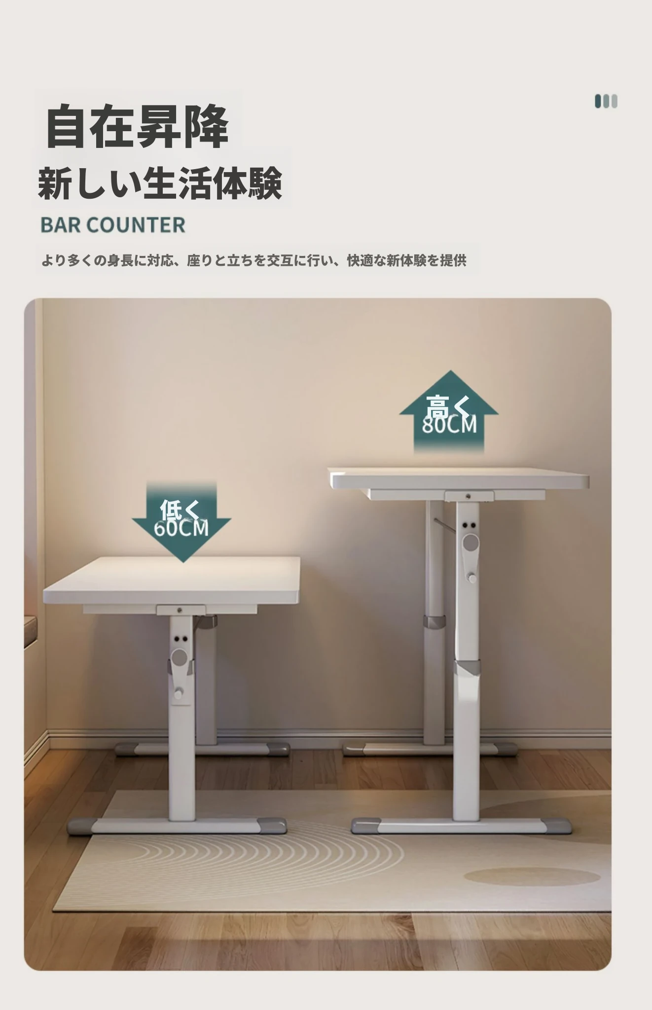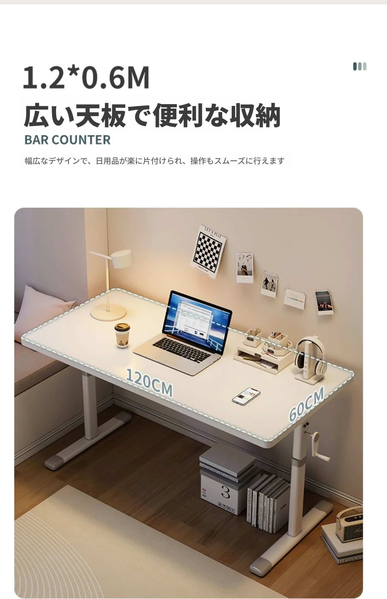 【アップグレードボード⭐エレガントホワイト】100X60⭐ハンドクランク昇降