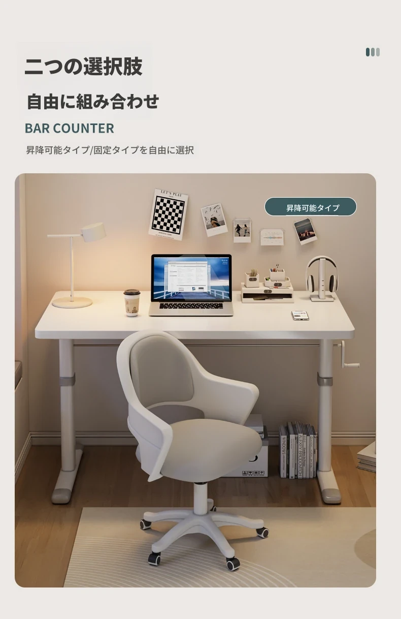 【テーブル椅子セット⭐ボードアップグレード⭐エレガントホワイト】100X60⭐ハンドクランク昇降