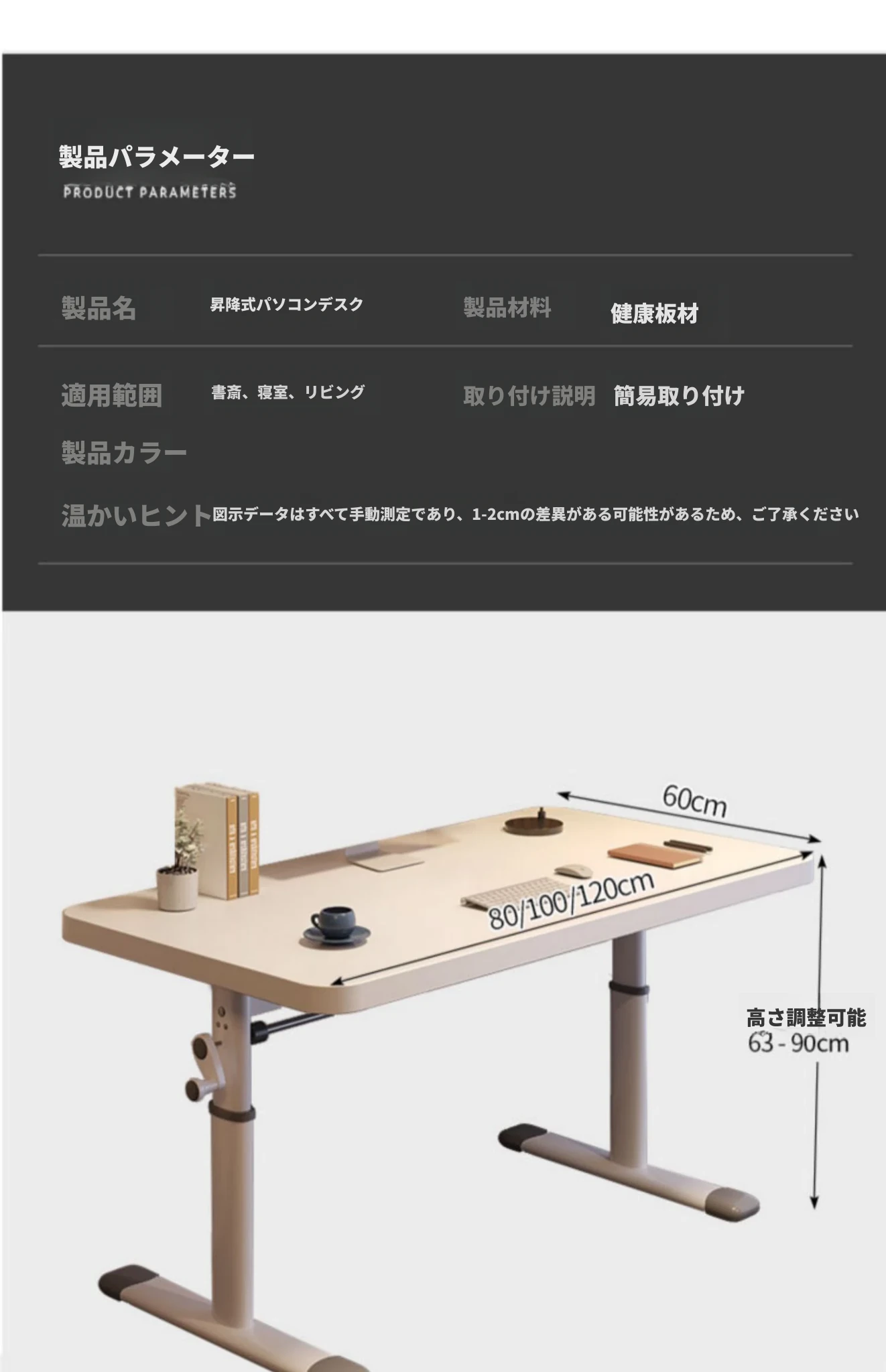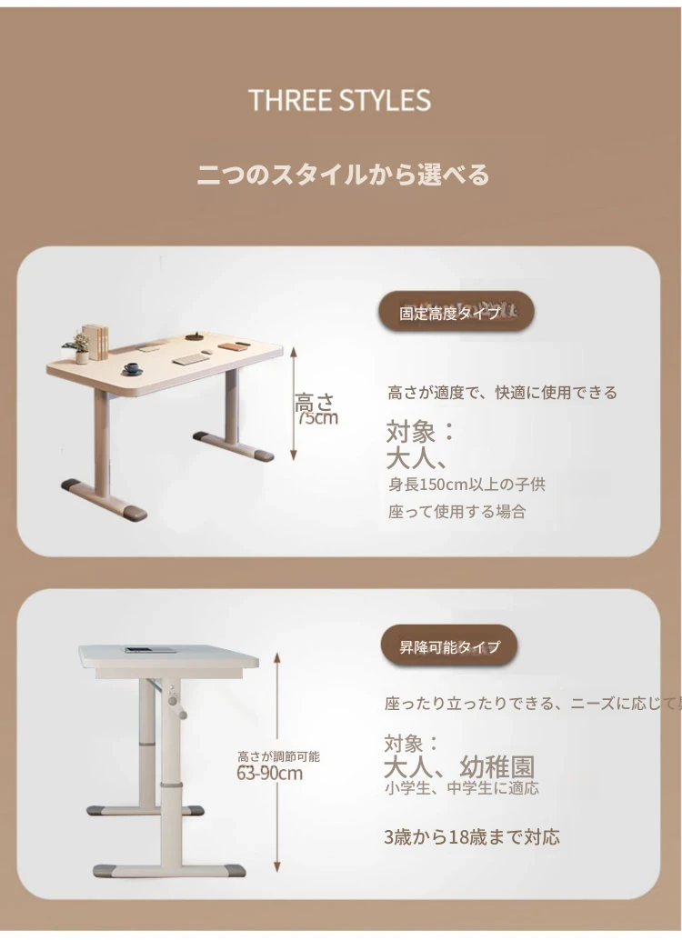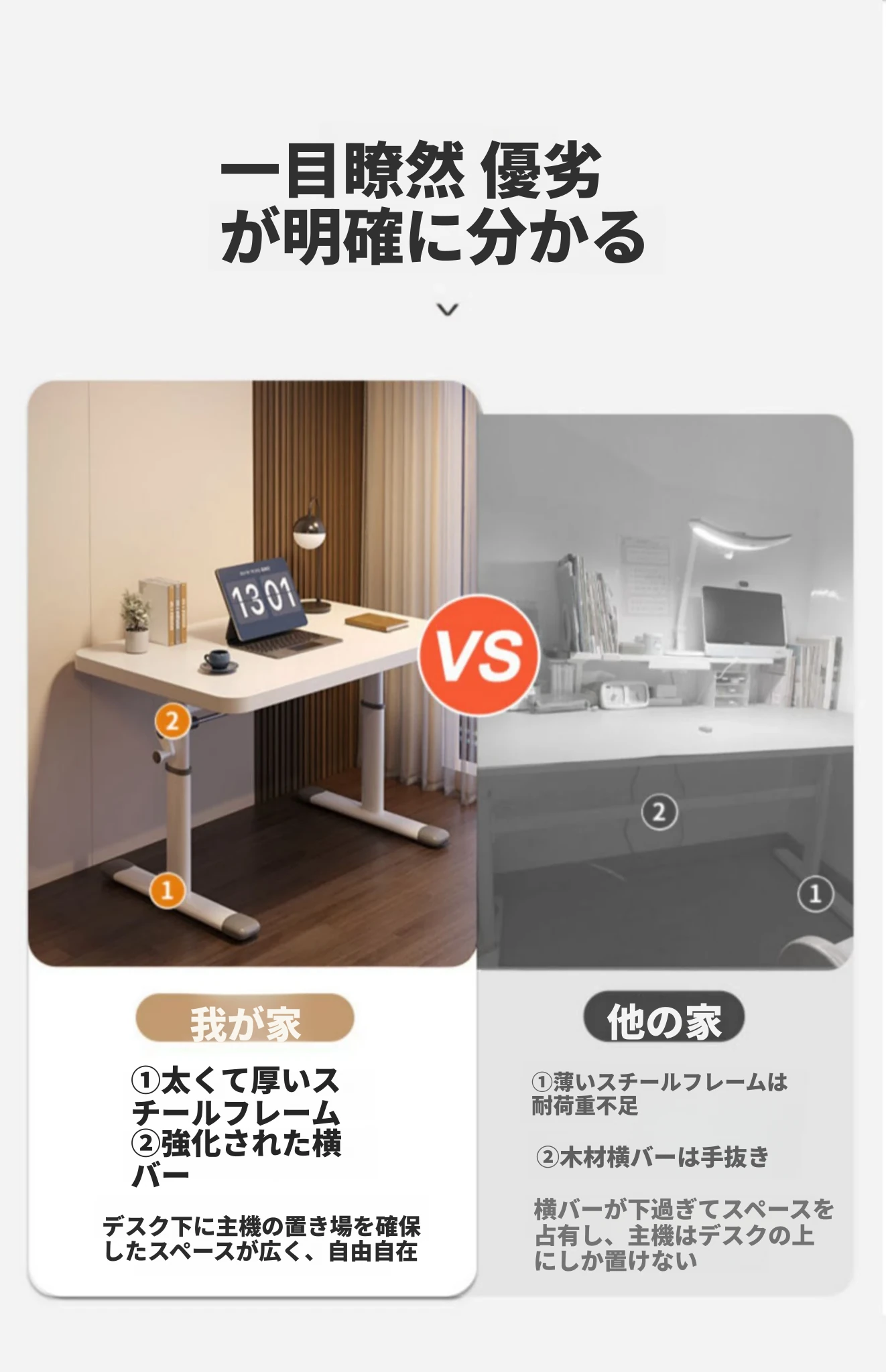 昇降式デスク:シンプルでスタイリッシュな学習デスク!学生や家庭用に最適、快適な作業空間を提供します。寝室やオフィスにもぴったり!あなたのライフスタイルに合わせて高さ調整可能!