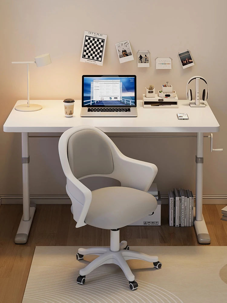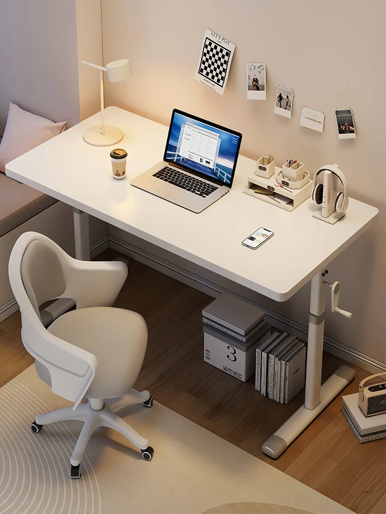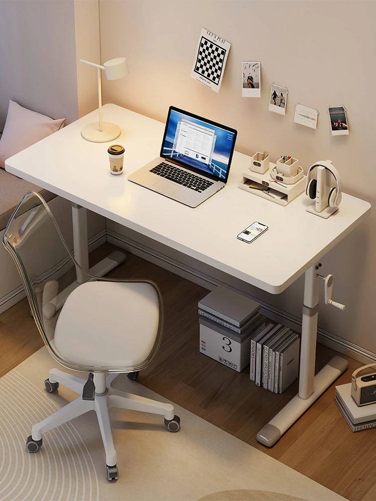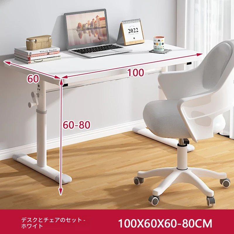 【テーブル&チェアセット⭐材質アップグレード⭐エレガントホワイト】100X60⭐手動昇降