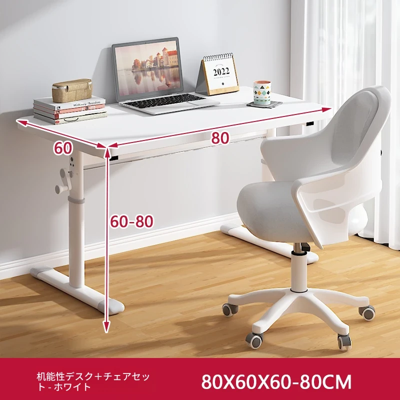 【テーブル&チェアセット⭐材質アップグレード⭐エレガントホワイト】80X60⭐手動昇降