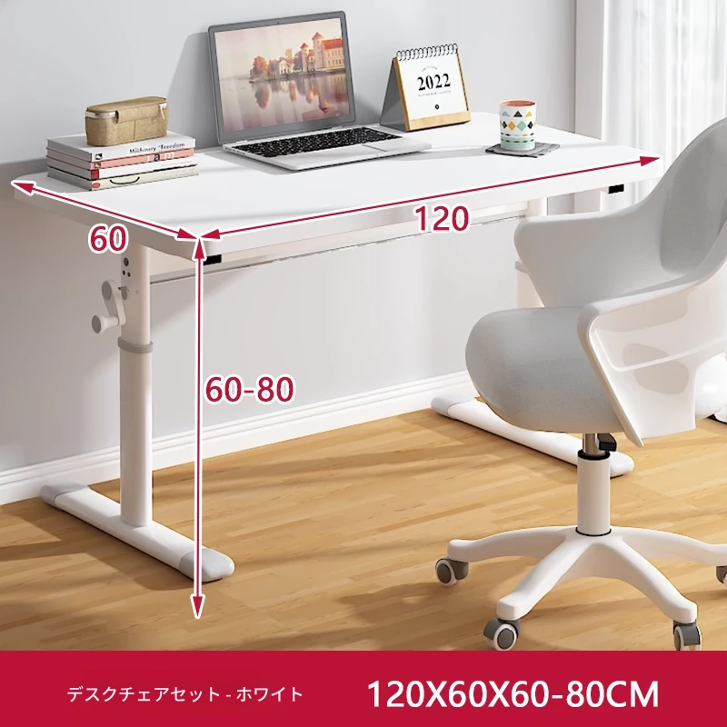 【テーブル&チェアセット⭐エコノミータイプ⭐エレガントホワイト】120X60⭐手動昇降