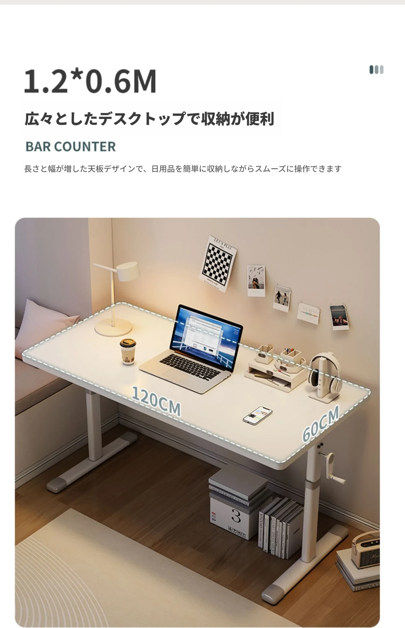 【アップグレード材⭐エレガントホワイト】120X60⭐手動昇降