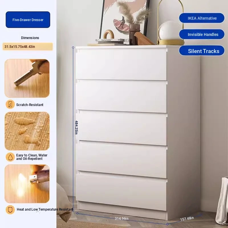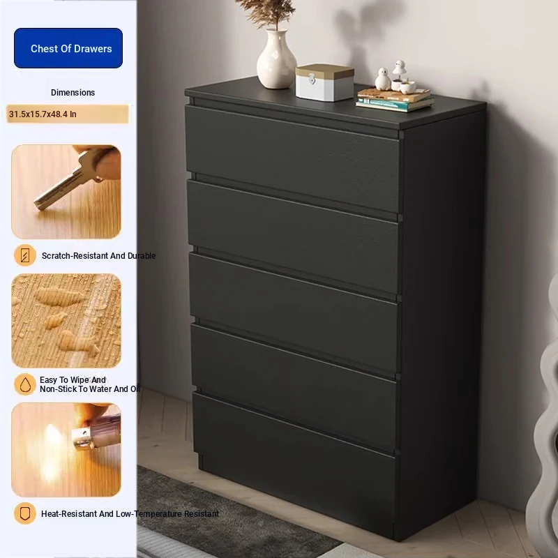 Modern Minimalist Five-Drawer Cabinet for Living Room - Stylish Sofa Side Storage, Bedroom Wall-Mounted Organizer, Bed-End Storage Unit, Vertical Cabinet for Efficient Organization