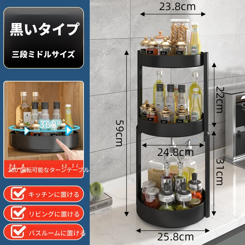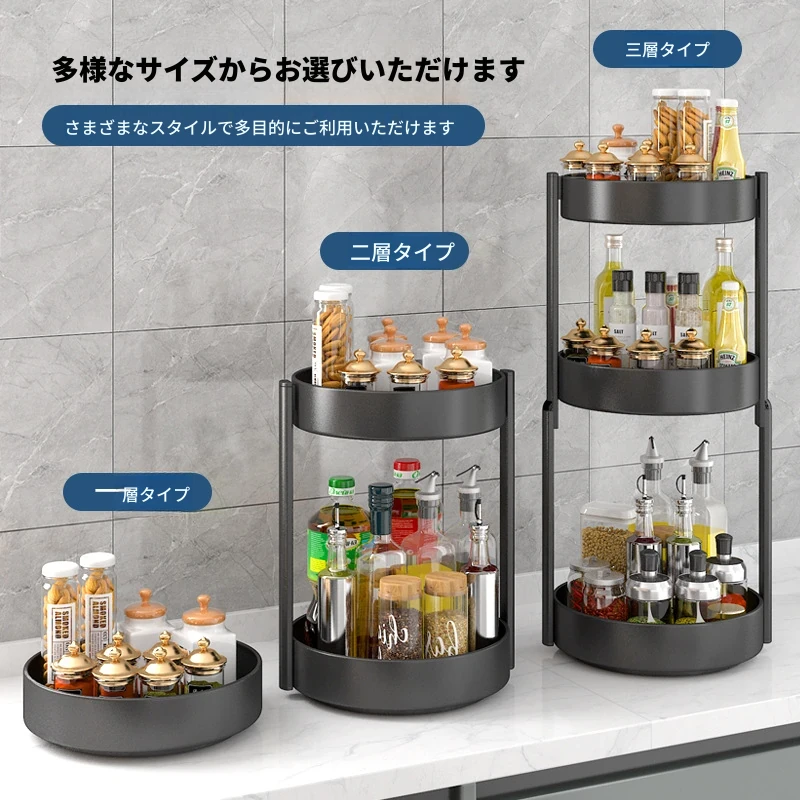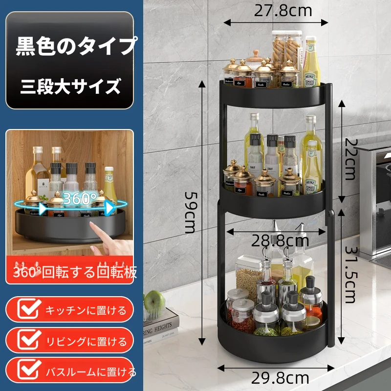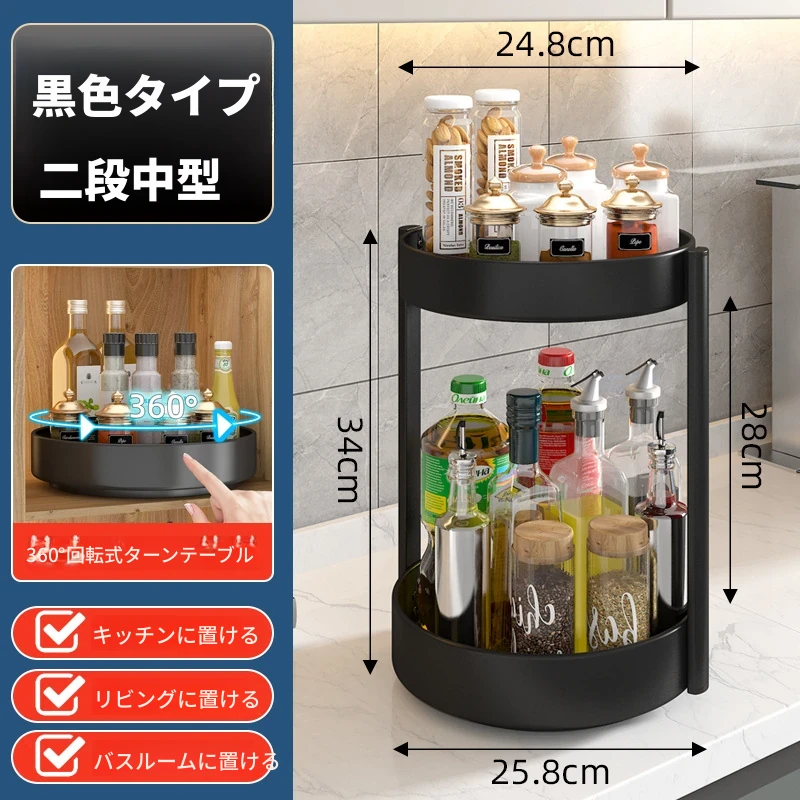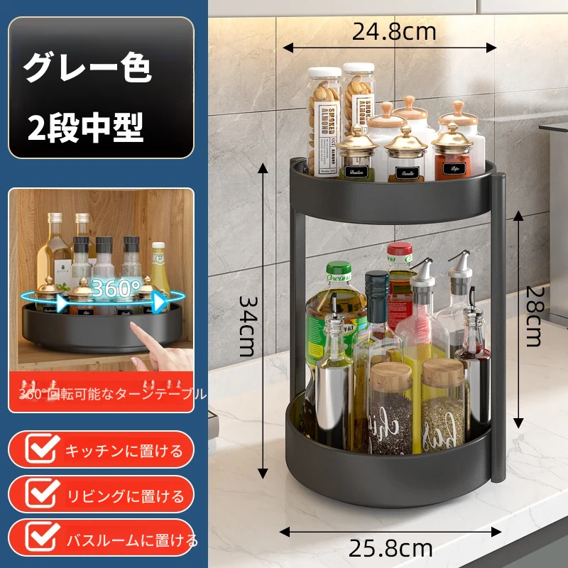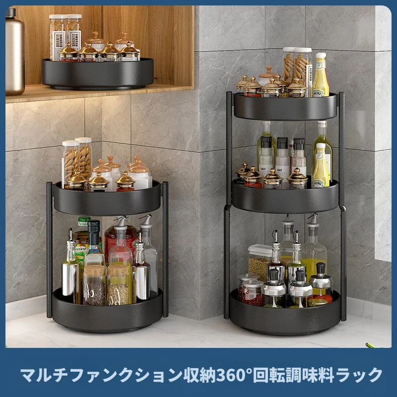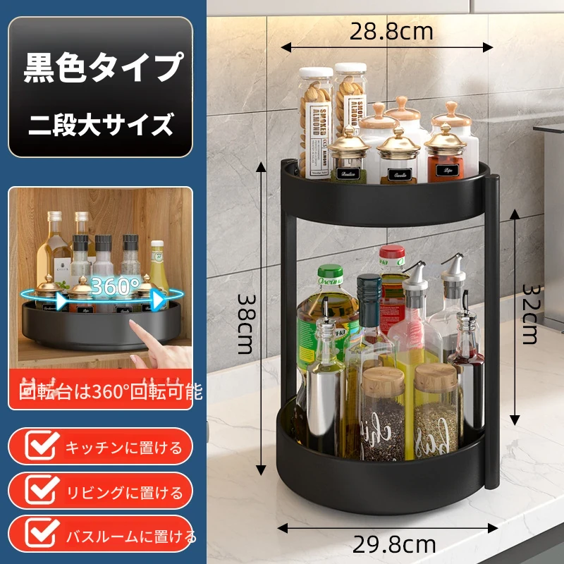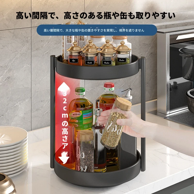 回転スパイスラック - キッチン用油・塩・醤油・酢専用調味料ボトル収納棚!多機能な卓上回転収納で、スッキリ整頓!使いやすさ抜群で、お料理がもっと楽しくなる便利アイテム!