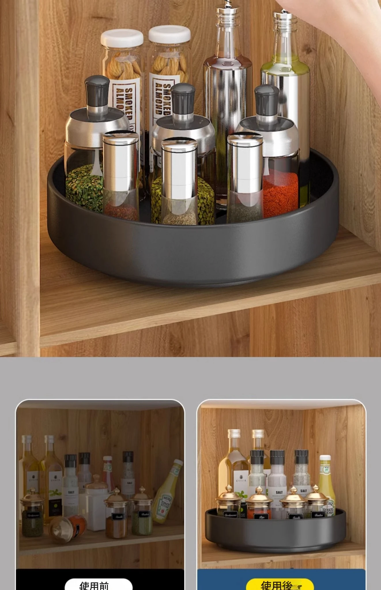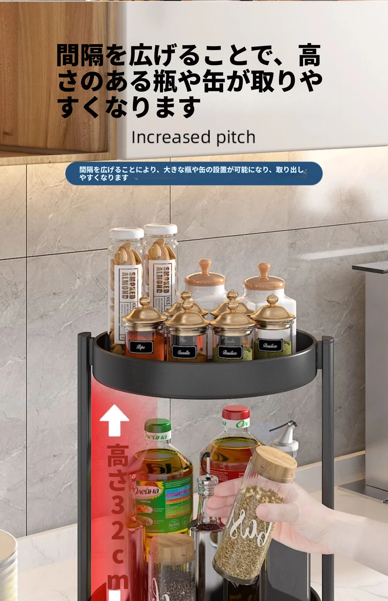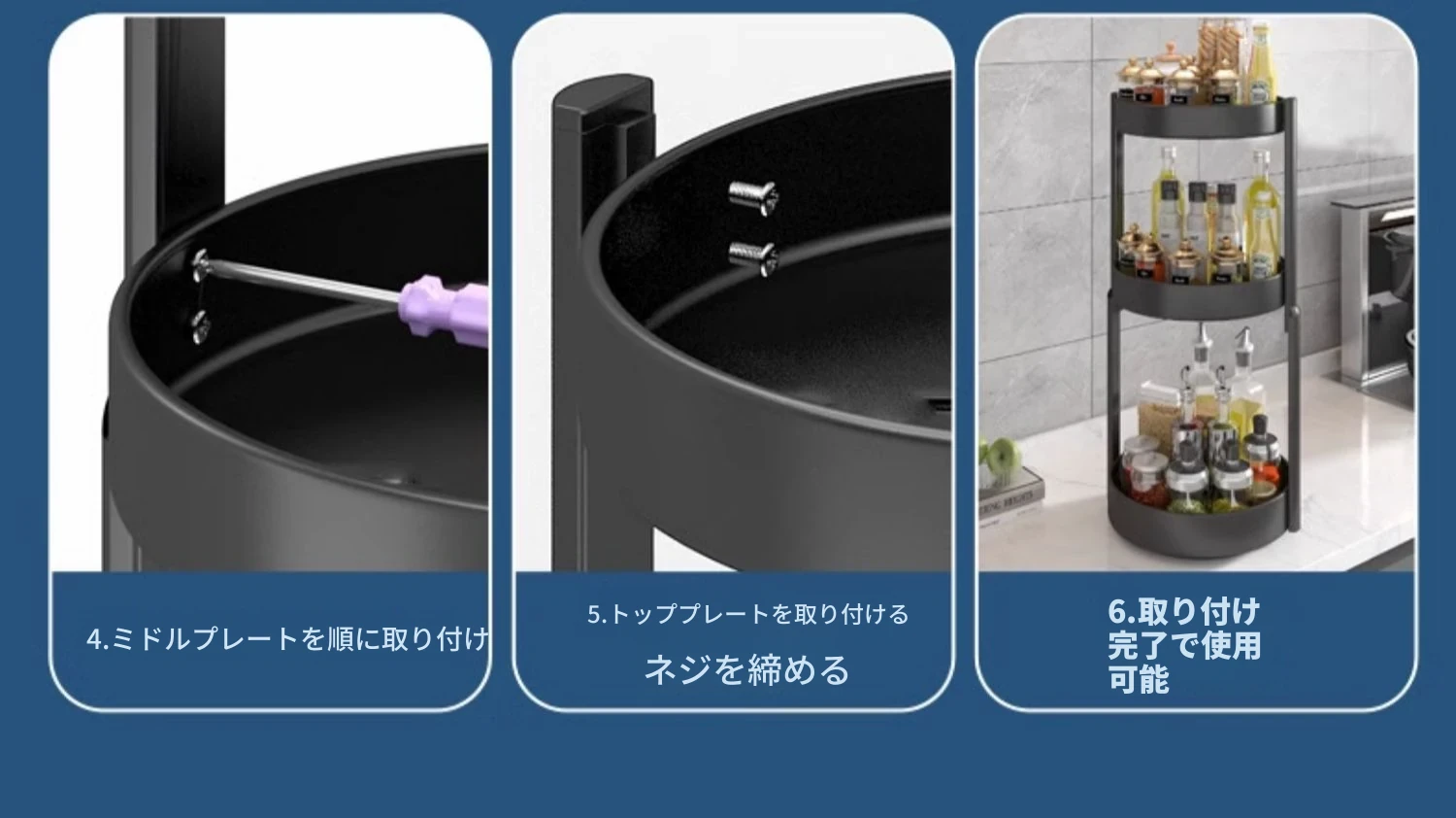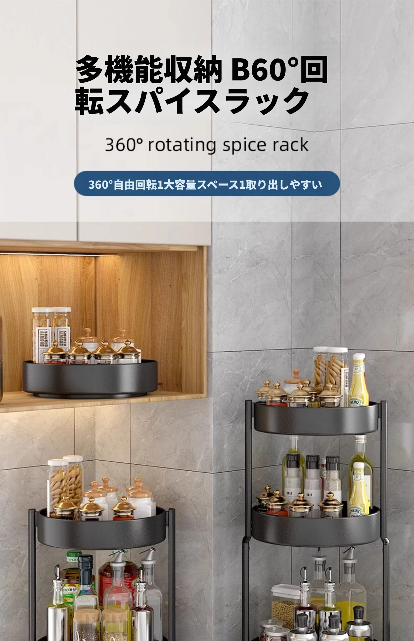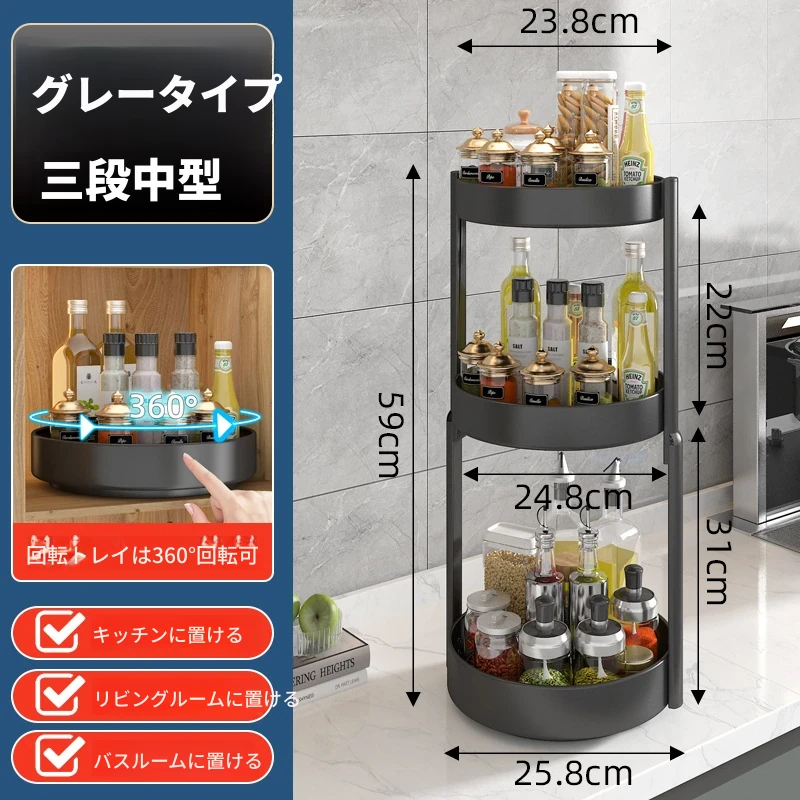 回転スパイスラック - キッチン用油・塩・醤油・酢専用調味料ボトル収納棚!多機能な卓上回転収納で、スッキリ整頓!使いやすさ抜群で、お料理がもっと楽しくなる便利アイテム!