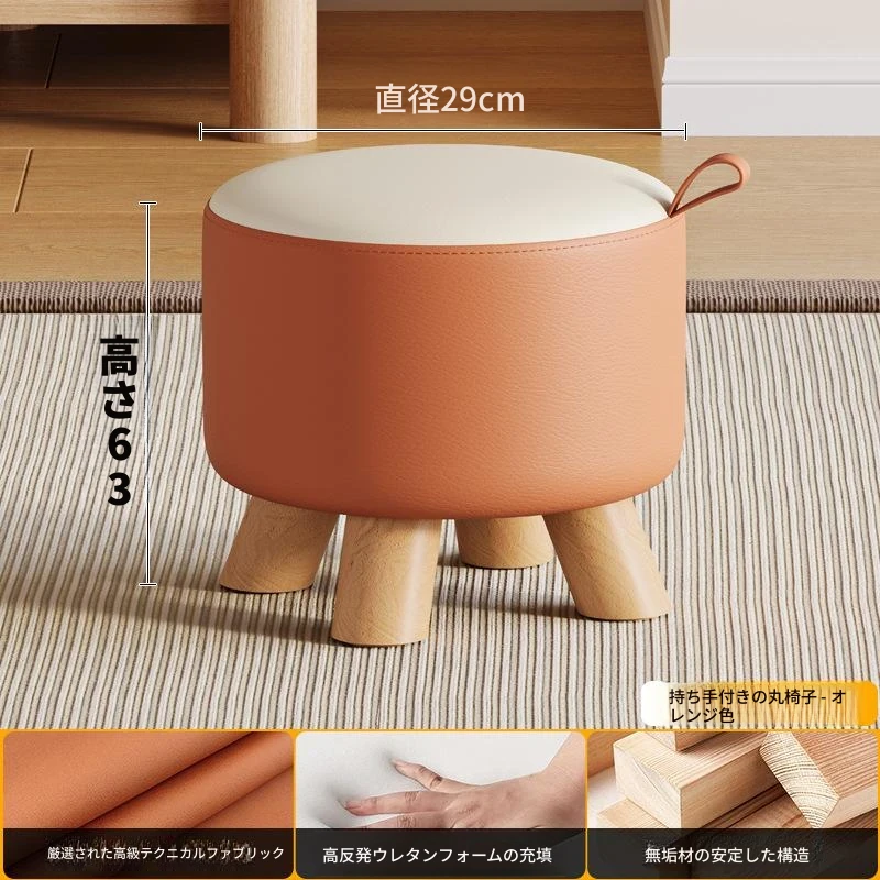 クリエイティブハンドルラウンドスツール-オレンジ色【耐磨テクニカルファブリック】