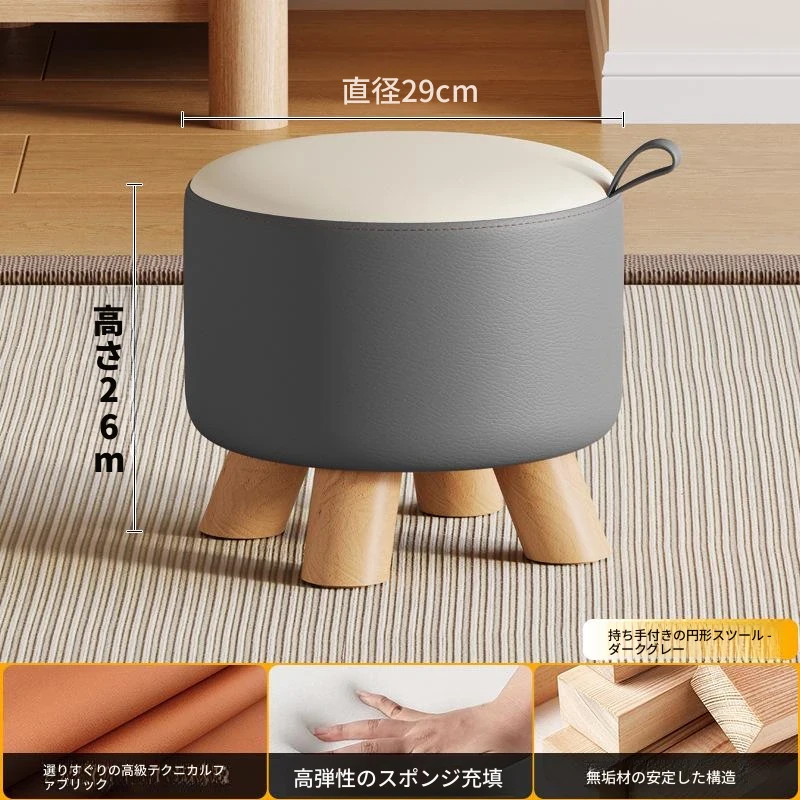 クリエイティブハンドルラウンドスツール-深灰色【耐磨テクニカルファブリック】