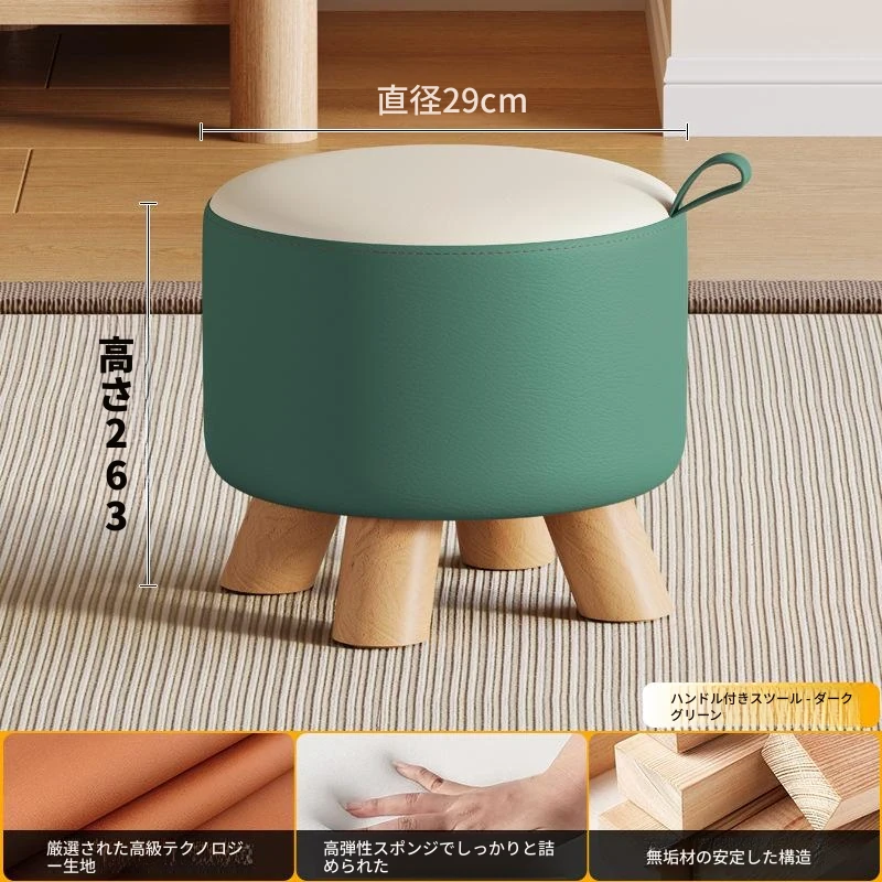 クリエイティブハンドルラウンドスツール-墨緑色【耐磨テクニカルファブリック】
