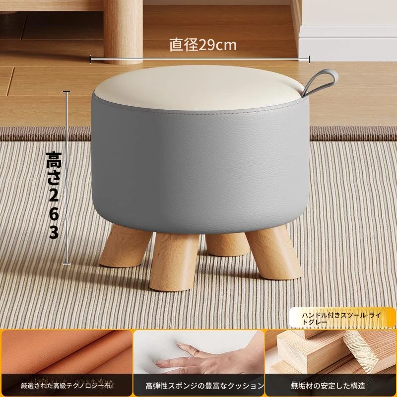 クリエイティブハンドルラウンドスツール-淡灰色【耐磨テクニカルファブリック】