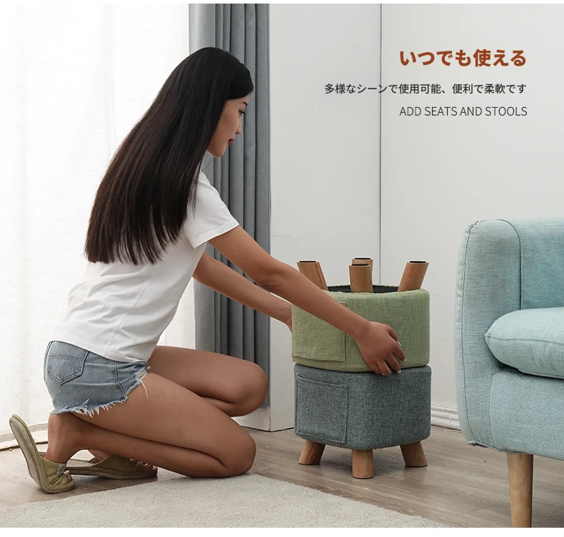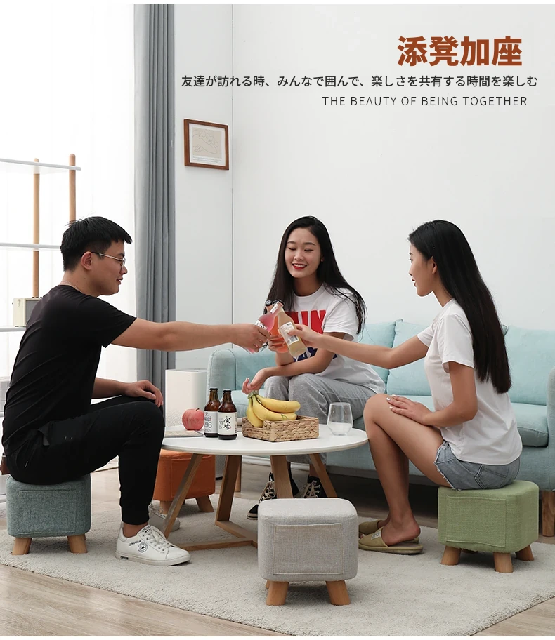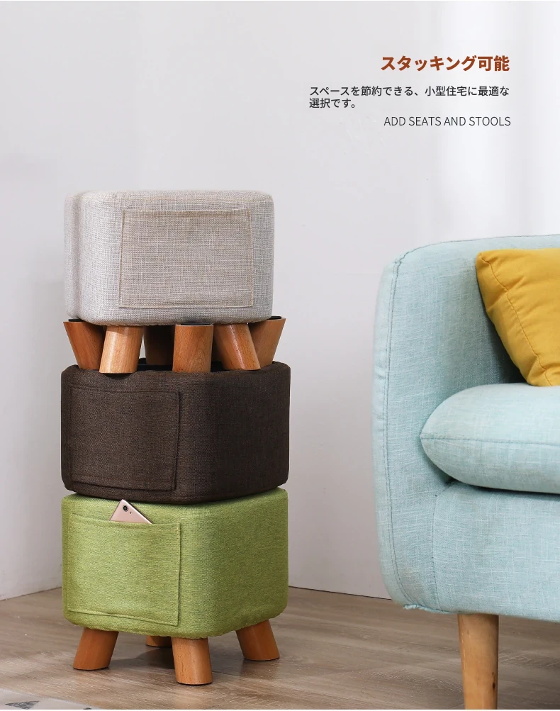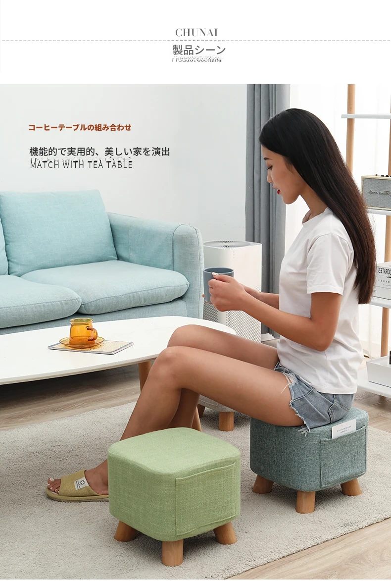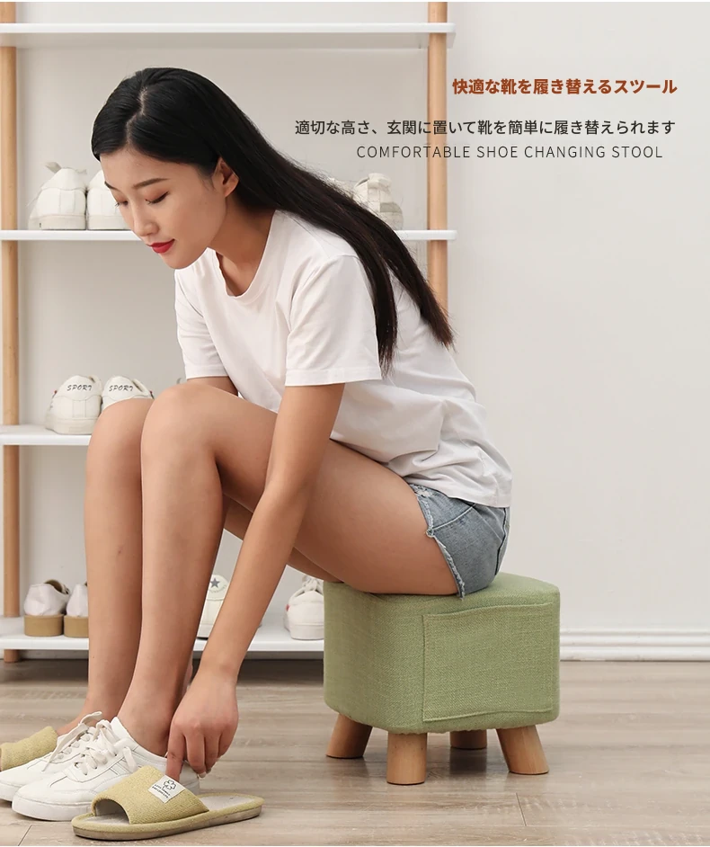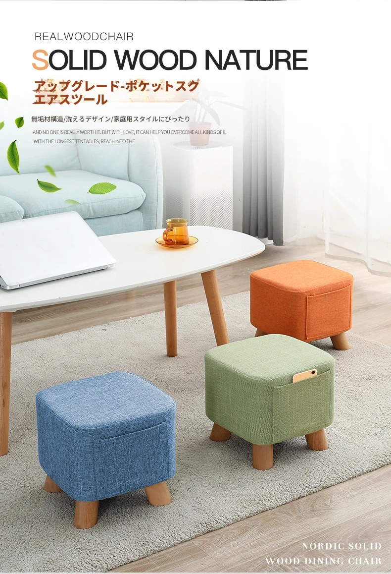 おしゃれな無垢材の小さなスツール - 家庭用の靴替えスツール、リビングのコーヒーテーブルにぴったり、布製ソファの足置きにも最適なクリエイティブな正方形スツール!