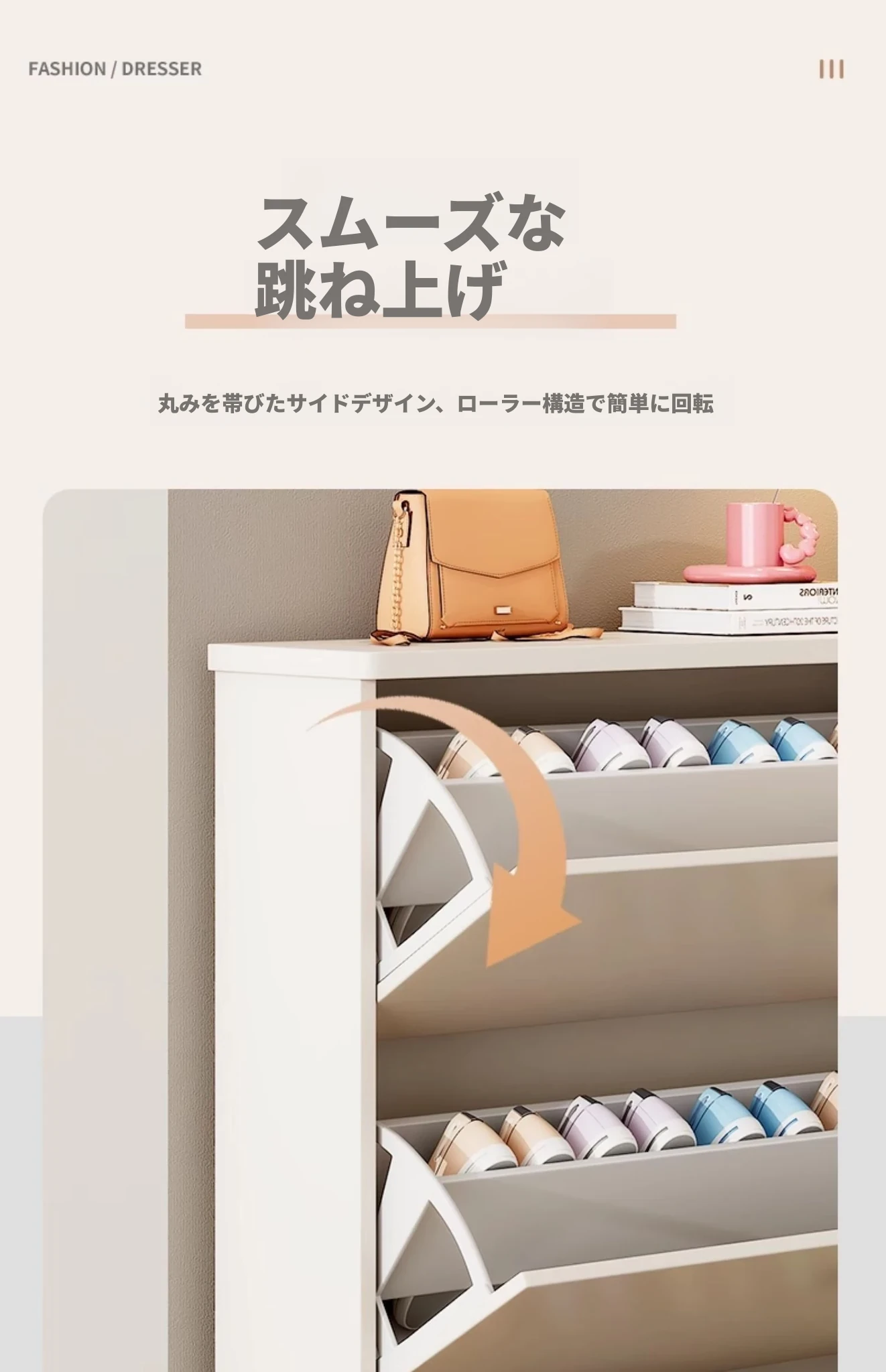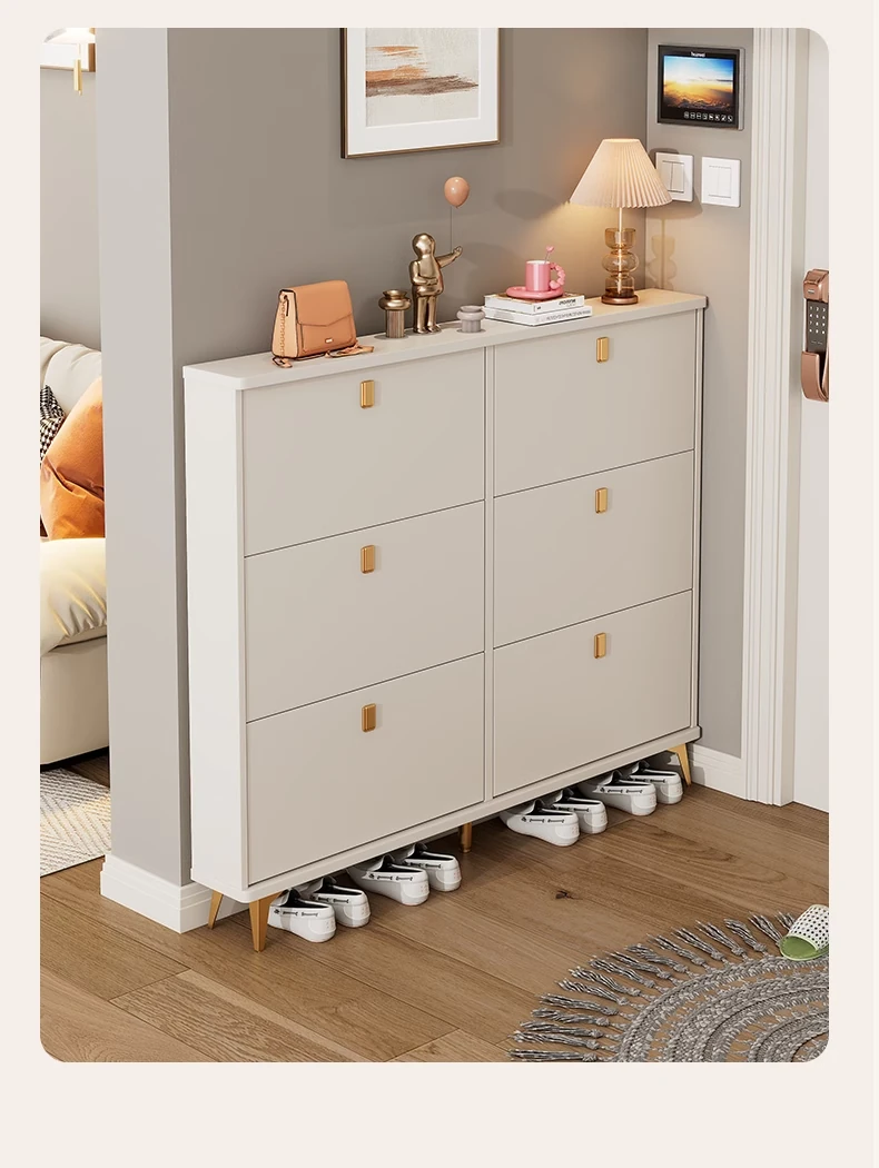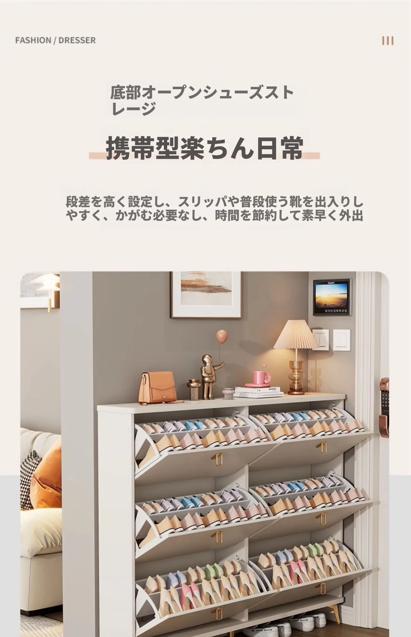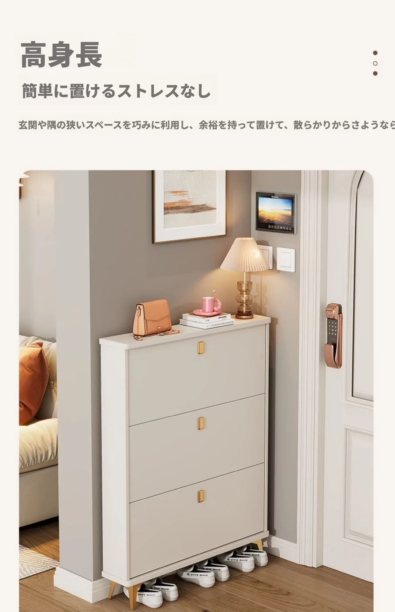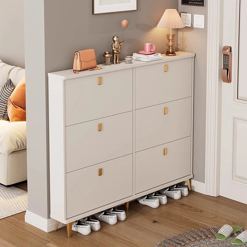 クリーミー風の超薄型シューズキャビネット!家庭用玄関に最適なリフト式収納ラックで、スペースを無駄にせずスマートに靴を整理。おしゃれで実用的な玄関収納の必需品!