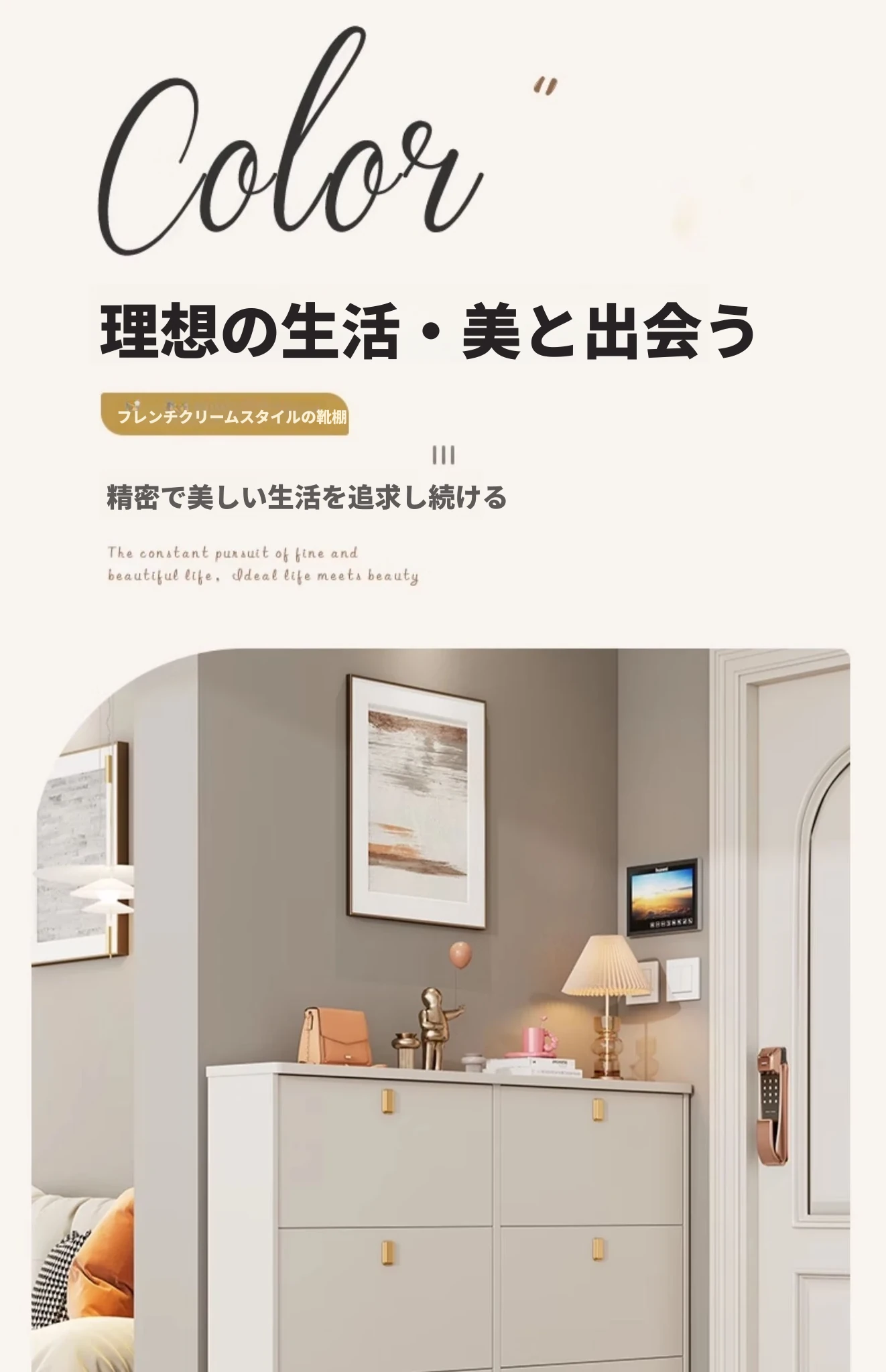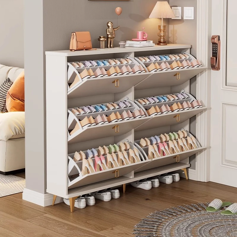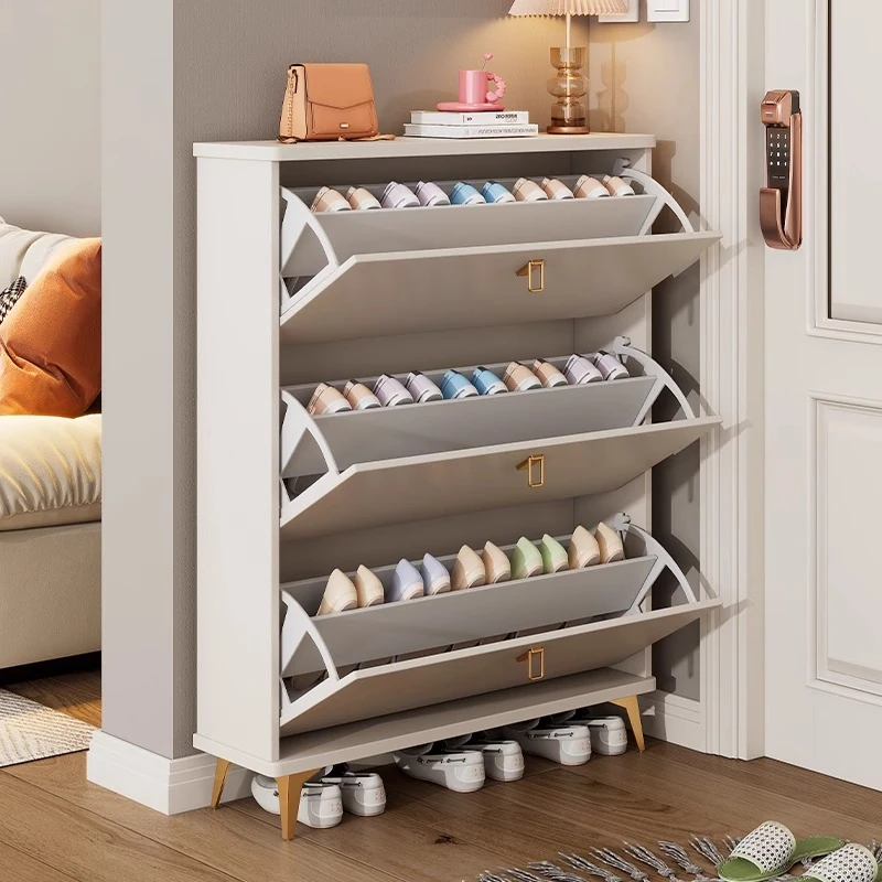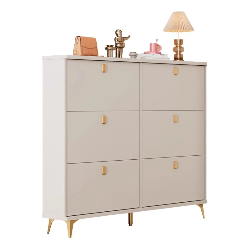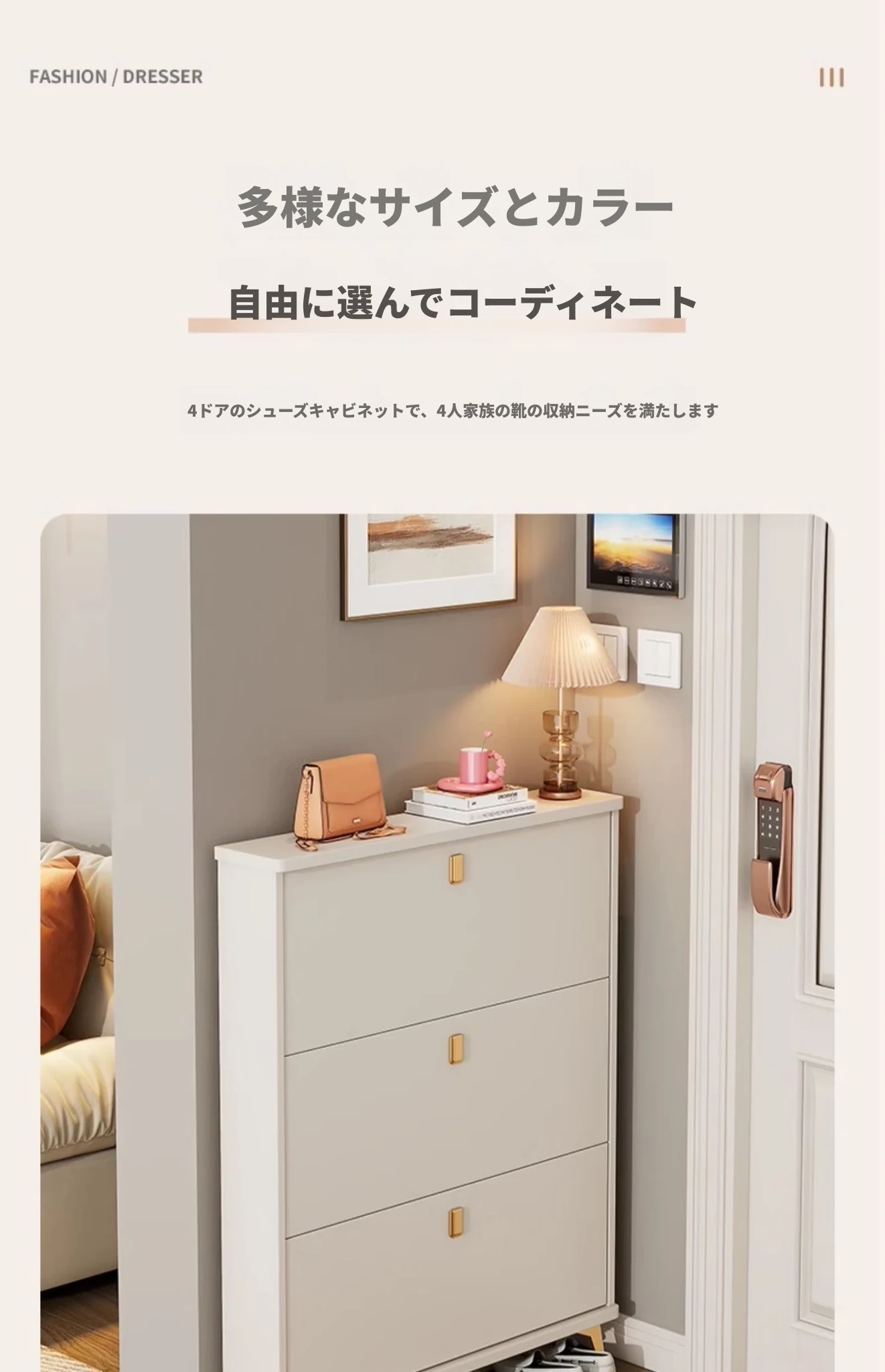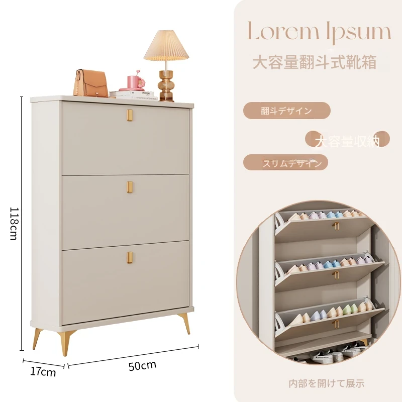 クリーミー風の超薄型シューズキャビネット!家庭用玄関に最適なリフト式収納ラックで、スペースを無駄にせずスマートに靴を整理。おしゃれで実用的な玄関収納の必需品!